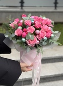 Яркая новогодняя композиция в стильной коробке, созданная для тех, кто любит насыщенные оттенки и праздничную атмосферу. В центре — малиновые розы Сильва Пинк, которые привлекают внимание своим глубоким выразительным цветом. Нежная хвоя добавляет аромата зимы, а изящные новогодние игрушки делают композицию по-настоящему праздничной.